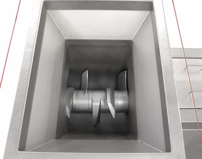 scansteel foodtech® scanStructor top view, showing the infeed hopper with heavy duty crushing claws.