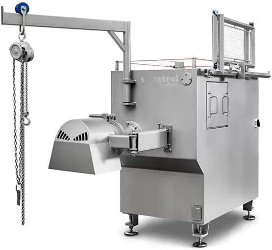scansteel foodtech® MG 200, MG 225 MG 250 grinders are designed specially for fresh meat and fresh meat raw materials as well as for pre-broken/crushed frozen blocks.