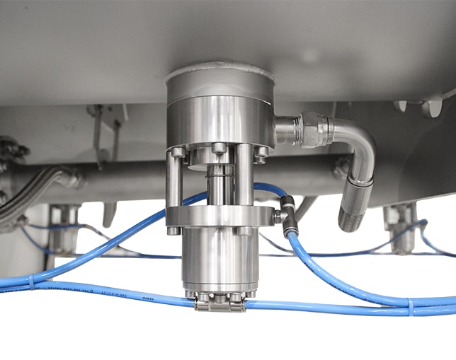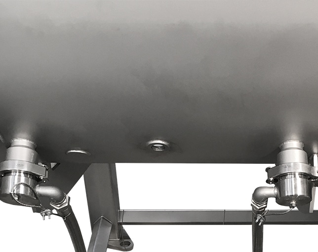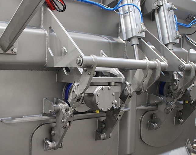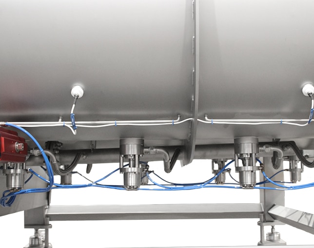 Two mixing wings positioned side by side at the same height from floor level. 250 Litres to 6250 Litres mixing container volumes. The square shaped mixing container contributes to scansteel foodtech’s very short mixing times, 2 units of frequency converters control the mixing wing speed (depending on the customer specifications). Please note that the scansteel foodtech TSM Mixers, as a standard, are equipped with 4 (four) mixing wing directions: