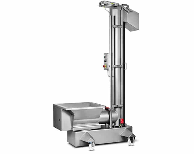 • scansteel foodtech® Vertical screw conveyors are for mounting directly on grinder outlets.