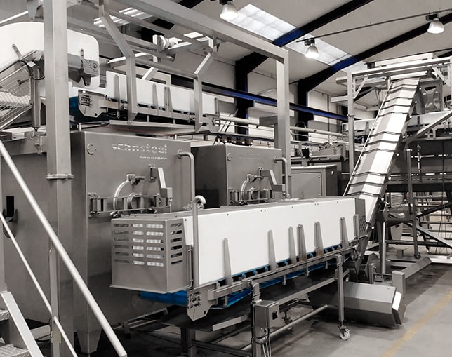 This position shows the belt conveyor feeding a scansteel foodtech® mixer on right hand side.