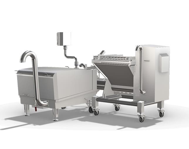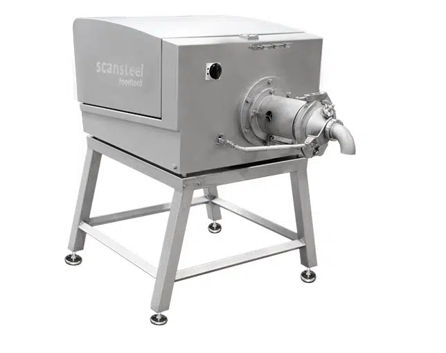 The scansteel foodtech® scanEmul 175 is an emulsifier for production capacities ranging from 2000 – 7000 kg/hour. The scanEmul 175 is manufactured with the following motor options: 55 kW, 75 kW, or 90 kW. The scanEmul 175 is, as standard, supplied in two versions, pump fed or hopper fed. For hopper fed applications, the hopper is a stand-alone hopper with a single or a double screw to avoid bridge building of meat raw material pre-mixes.