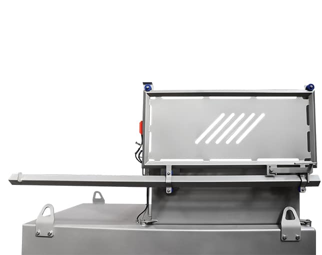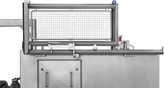 Side view of the scansteel foodtech® MG 250 with Hygienic zone shown in running (closed position).