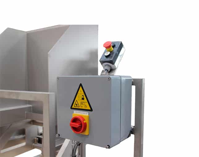 Operator/control panel of the scanSwing Loader with emergency stop.